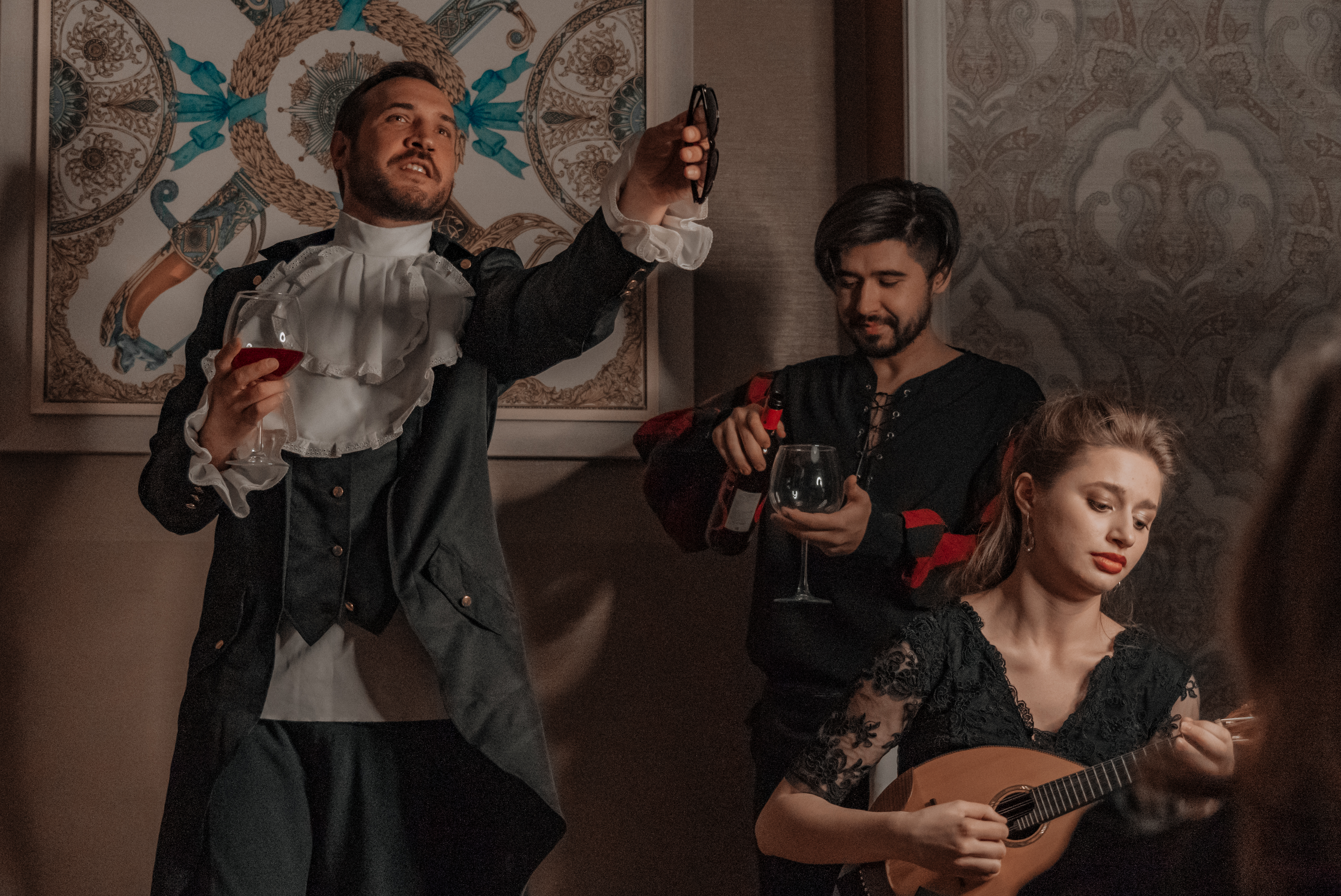 Вас ждёт элегантный театральный ужин "Каменный гость" — театральное шоу за столиком кафе. Это настоящий Театр и камерная обстановка. И, по секрету, у нас будет секретный гость — тот самый небезызвестный слуга двух господ.
